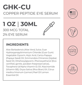 Formulated with a lower concentration of GHK-Cu, the eye serum is suited for the delicate skin around the eyes. Apply gently around the eye area with light tapping motions to support the appearance of this sensitive skin without irritating it.