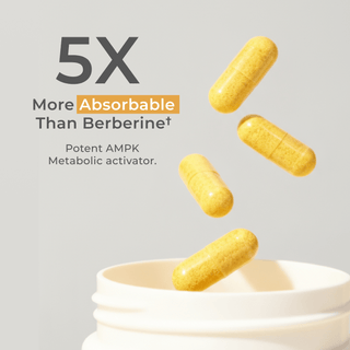 Dihydroberberine is the form your body converts berberine into during digestion. By taking it directly, you skip that bottleneck. In a 2021 randomized, controlled human trial, 100mg of dihydroberberine produced significantly higher plasma berberine levels than 500mg of standard berberine over a two-hour window [3]. That's up to 5x more absorption per milligram.